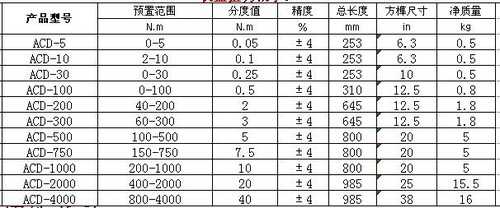 表盤扭力扳手參數